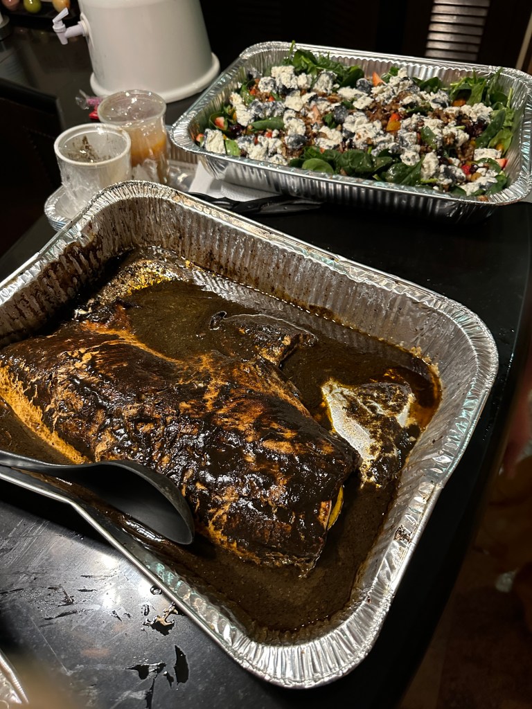 Hernan made us all a New Year’s Eve feast of Salmon in mole, pork with a mango salsa, lots of veggies and roasted potatoes and a great salad. He had bought a huge bottle of bubbly that we opened and drank at midnight watching the fireworks from our rooftop.
