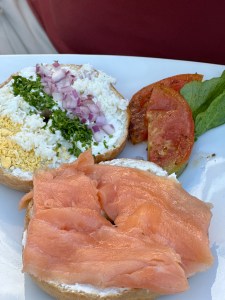 The tide has been unusually high. I’ve heard it’s because the 2 hurricanes late last year, damaged the beach. Pogo went running and then we went to Dstock for breakfast (I always thought it was just called D).