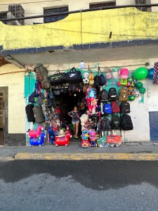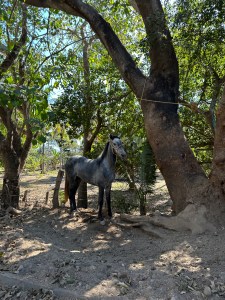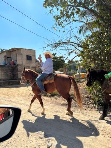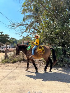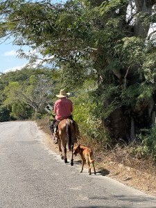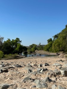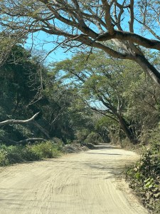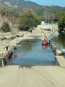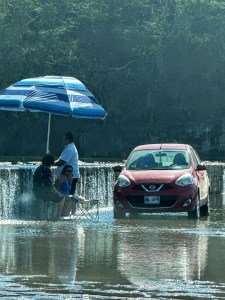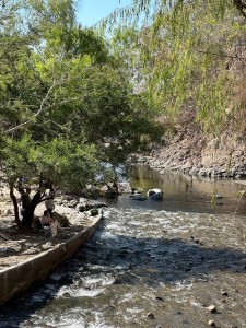 Instead of going through Bucerias, our usual route, Pogo decided to drive through Mezcales instead. It was nice to see different villages and towns on the way. We passed through San Vincente, San Jose, El Porvenir and San Juan de Abago among others. We thought by going early in the season, the river wouldn’t be too dry but it was probably the driest we have seen it. The little bit of water falling over the retaining wall was used by a family, first to wash their folding chairs, then as a place to hang out. They put a big umbrella up and just sat by the “waterfall” and had snacks. Right in the middle of the road. Being Sunday, a lot of family were enjoying sitting by the river and swimming.