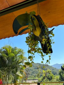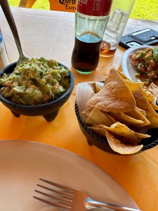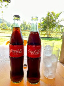 We continued our drive and ended up at the Restaurante Rio Ameca, which we had discovered last year. We were not hungry but we felt like we needed to order food as the place was quite empty. Pogo ordered tostadas and I had a shrimp quesadilla. We also had guacamole. The food was fresh and delicious. We both ordered a coke and we got half liter bottles! All for a total of 210 pesos or $10.50 USD. We love it there because it is quiet, in the middle of nowhere, full of tires sculptures and has a beautiful view. We will go back.