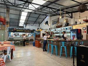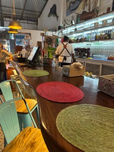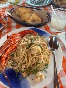 We went to dinner at a new restaurant that opened 7 months ago, called El Pesquero. I had one of my best dinner so far in Nuevo. The special of the night was lobster linguine and it was delicious. The place was unfortunately empty, with just a few other tables occupied. The owner, Eduardo, came to talk to us. He was quite passionate about life in general. We discussed travel. He loves Sicily and has been there “a million times”. He thinks he will retire there eventually. He proudly showed us the whole restaurant which he built with his own hands! But do they call him Eduardo the builder? NOOOO!!! 🙂 Joking aside, he was really interesting and gave us a few places to visit in Mexico that we had never heard of and that we now really want to go to. We will definitely go back to El Pesquero and will invite our friends to accompany us.
