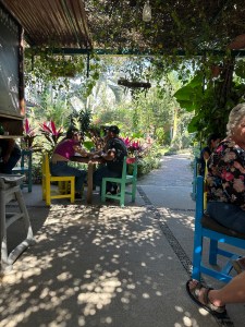 As our lives revolve around food and pickleball, let me tell you that the next morning, Pogo played pickleball then I picked him up and we went to Mama Nena for breakfast. Such a pretty place and the food is good as well. They made us 2 dozen fresh tortillas that we needed for dinner. We had invited Dee and Michel as well as Mario and Josée to come over but Dee decided not to come because they wanted to get ready for company arriving the next day. We “forced” Mario and Josée to come anyway since we had bought all the food for it. They were a little tired from a late night but were good sports. We made a taco bar which included steak, chicken and shrimp as well as all the accompaniments. Max spent the whole afternoon at Starbucks and came back around 8pm.