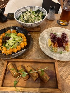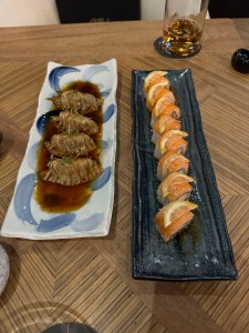 Pogo brought me back to Starbucks at 3pm so I could help Max with her work. I am now officially a social media assistant! He went to a doctor to discuss the problems with his knees. He was told he had calcium deposit on both kneecaps. He gave him a prescription of glucosamine and meloxicam. He is contemplating PRP treatments or possibly surgery. The doctor said that he should probably not play pickleball anymore. Max and I stayed at Starbucks until 6:30pm, went back to the condo to change, were surprised by beautiful bouquets of flowers and chocolate from Pogo and went for dinner at Yeo. It was so delicious! We all shared rock shrimps, gyoza, lobster taquitos, cucumber and seaweed salad, crispy rice spicy tuna and a sake lemon roll. We also shared a caramel lava cake with banana ice. I’m still full thinking about it!