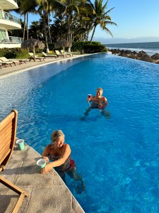 We took a nap then brought margaritas to the pool and shared them with Mario and Josée while watching the sunset. We had burgers and a caprese salad for dinner while watching tv.