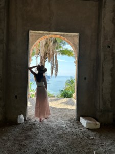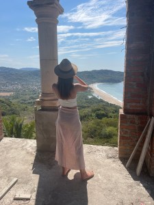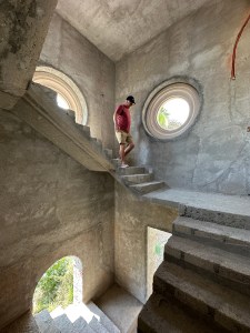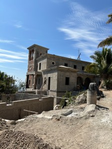 It became our quest for the next hour but we finally found it. There were 2 girls there when we arrived. While my crew went on the unfinished upper floors (my vertigo stopped me from going) I chatted with them. One of them, from Scotland, who had been living in Lo de Marcos said that the construction of the house had halted 3 years ago because the owner ran out of money. The locals have nicknamed it Dracula’s castle. If they ever finish it, it will be quite a house with an amazing view of the beach and of the ocean. I’m not sure if there is a new owner because there were a bunch of cement bags and a few machines that I assume by now would have been stolen but there was definitely a lot of dust everywhere. We all took a ton of pictures and Pogo droned. We left when a bunch of unfriendly kids on motorcycles arrived, set themselves up at a makeshift table and started rolling some joints.