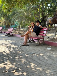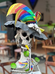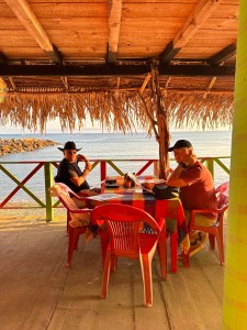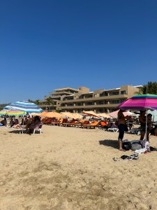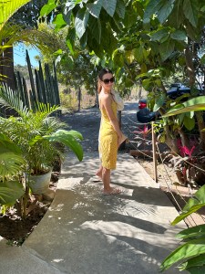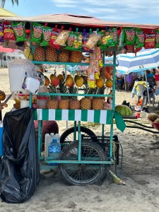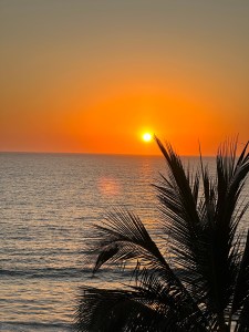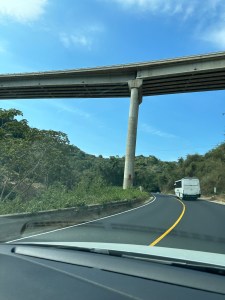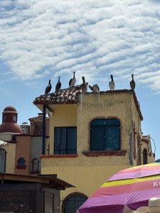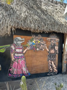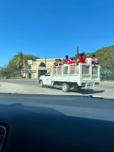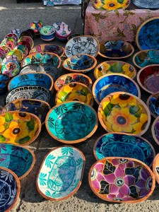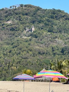 We made our way down the dusty mountain road to our next stop: San Pancho. We tried to go to see the horses at the polo ground but they now have a new gate and the guard wouldn’t let us through. We went in town, walked around then drove to Sayulita. We parked, found the vendor where Max had bought a woven bag 5 years ago that she wanted to replace it. They had some very similar so she bought one and I did too. We met the boys on the beach for a beverage, walked through the center of the town and left.