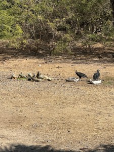 Pogo went to pickleball and Michel and Edward walked to Starbucks then came home to pack. We picked up Pogo at 10am then went to La Isla for breakfast. We saw some turkey buzzards eating with the iguanas. The boys flight was delayed from 1:45pm to 3:20pm so we put their suitcases in the car and they came with us to my doctor appointment. There was a farmer’s market next to my doctor’s office so they went there while the doctor told me the results of my MRIs. Michel got me a little souvenir that he displayed as earrings when he met me back. I definitely have tears in my menisci (plural for meniscus, I learned a new word!) , 2 cysts, arthritis and my kneecaps are in bad shape. He said I will need knee replacements in the future. Yay…. I might have cortisone shots tomorrow morning.