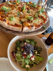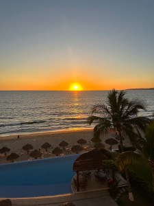 We went to La Rustica in Punta de Mita to try a new restaurant for dinner. We shared an Al Pastor pizza and a Mexican salad. We got home just in time to see the sunset. We watched the violent and action packed latest episode of the Last of Us.