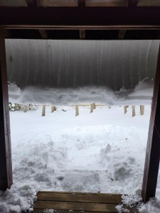 Shaun sent me pictures of the snow slowly coming down his tin roof, creating a snow curtain on his front porch.