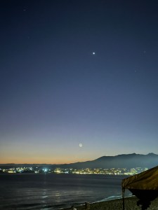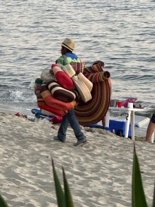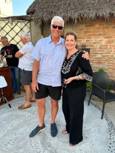 Pogo couldn’t wait to get back to the condo as his back was really hurting again. He took Advil and a long nap and started feeling better. He made a guacamole. We had invited Mario and Josée to join us for pre-dinner margaritas at our condo then we all took a taxi to Bucerias for dinner at Mezzogiorno. We shared bruschetta and garlic bread with gorgonzola. All the pasta dishes were great. Derrick got another birthday dessert.