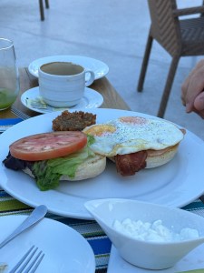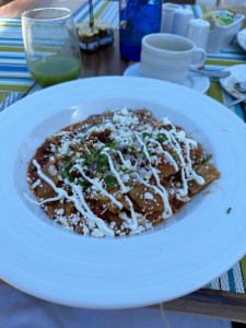 Martha and her friend Leti came to clean the condo. We decided to go to Mezzo Mare, the Marival hotel beach club, for breakfast. We had never been for breakfast there but Pogo said they had good reviews and he wanted comfortable chairs as his back was bothering him. I tried el pastor chilaquiles and he had the biggest fried egg sandwich I’ve ever seen. I didn’t really like mine. We tried to pay with our accumulated points from our Marival card but the waiter said we couldn’t. Pogo asked to talk to the manager and she explained that the machine had been broken for awhile and that it just wasn’t possible at this time. He wasn’t a happy camper.