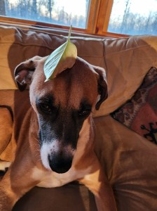 Shaun took a picture of Penny wearing a “Totoro hat”. Haha!