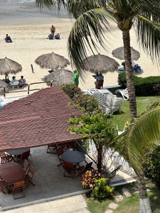 It was still another grey day so I organized a little bit more. I do bring way too much stuff when we come here for the winter. The beach had been emptied of chairs lately and we saw then bringing them back. I assumed that they had taken them to be cleaned. The place will look spic and span for all the owners coming back for the Easter vacation.