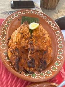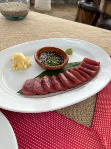 We had an incredible meal starting with queso fundido and tuna sashimi. As my main dish, I had a grilled red snapper filet with garlic and olive oil and Pogo had a full red snapper, zarandeado style. We had flan and churros for dessert. We had great service and the food was delicious. See you next year Mina!