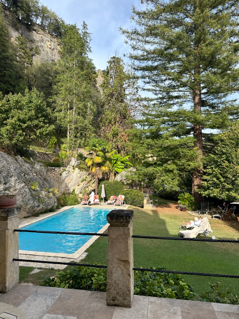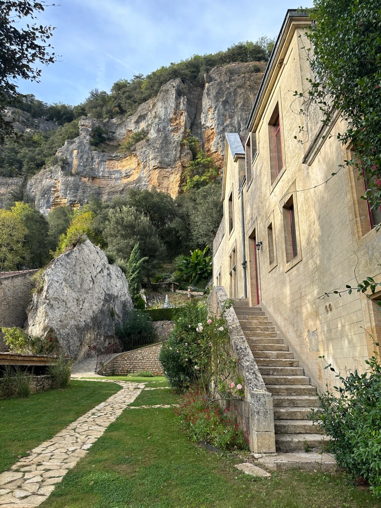 We arrived at the Manoir de la Malartrie in Vezac, in the Dordogne region, by 4:30pm, after driving through narrow countryside roads for the last 45 minutes. Ooafaa and Daniel, the owners for the last 16 years, greeted us and showed us around the beautiful 19th century property, including a rooftop, pool, gorgeous gardens, water fountains and pathways, one leading to the gardens of the Château Marqueyssac. The manoir has only 5 bedrooms. Our bedroom with a view of the pool, had actually 2 rooms. The second room had 2 more beds and the bathroom….without a toilet. I finally found it in a big closet at the end of the second room. We have had more accommodations with the toilet being in a room of its own.