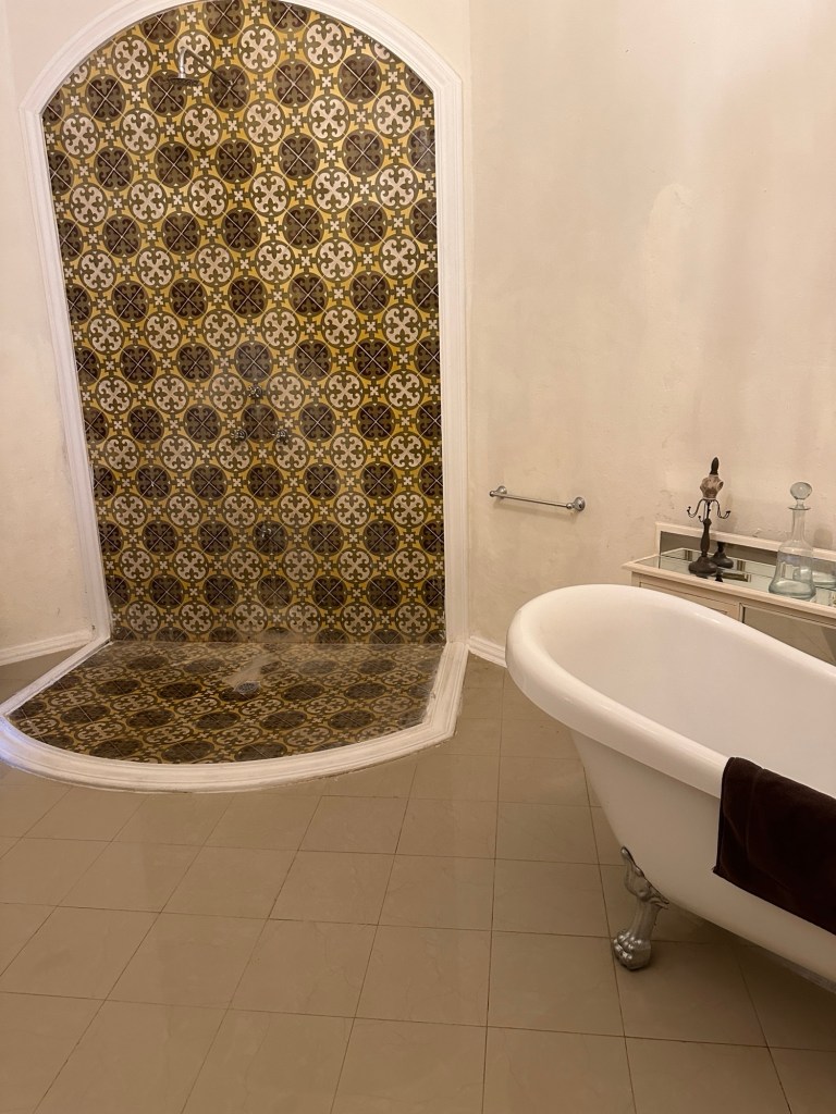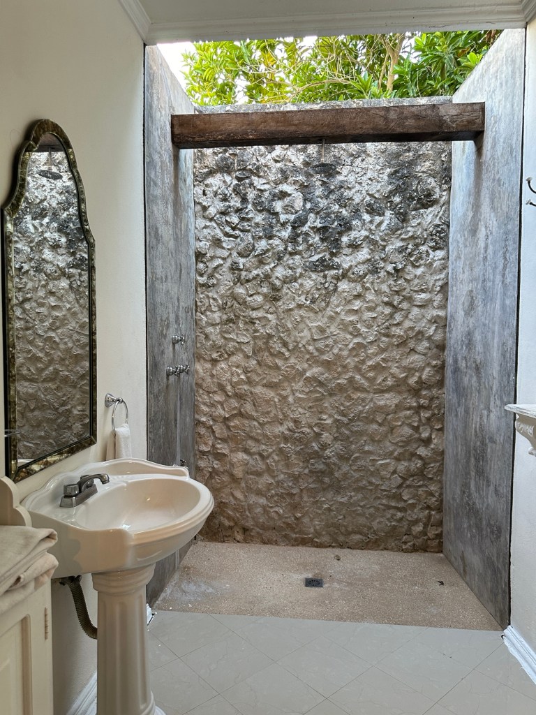 We arrived at our airbnb around 4:15pm. From the outside, it was just a door on a long plain wall but once we opened the door, we entered a cute courtyard with a small pool. On the left, the kitchen and living room were separated by the outdoor dining room. An outdoor spiral staircase brought us to 2 big bedrooms, one with an open-air shower. On the right of the courtyard, the master bedroom was on the main floor and a second bedroom with a big patio was on the second floor. Totally unexpected and gorgeous.