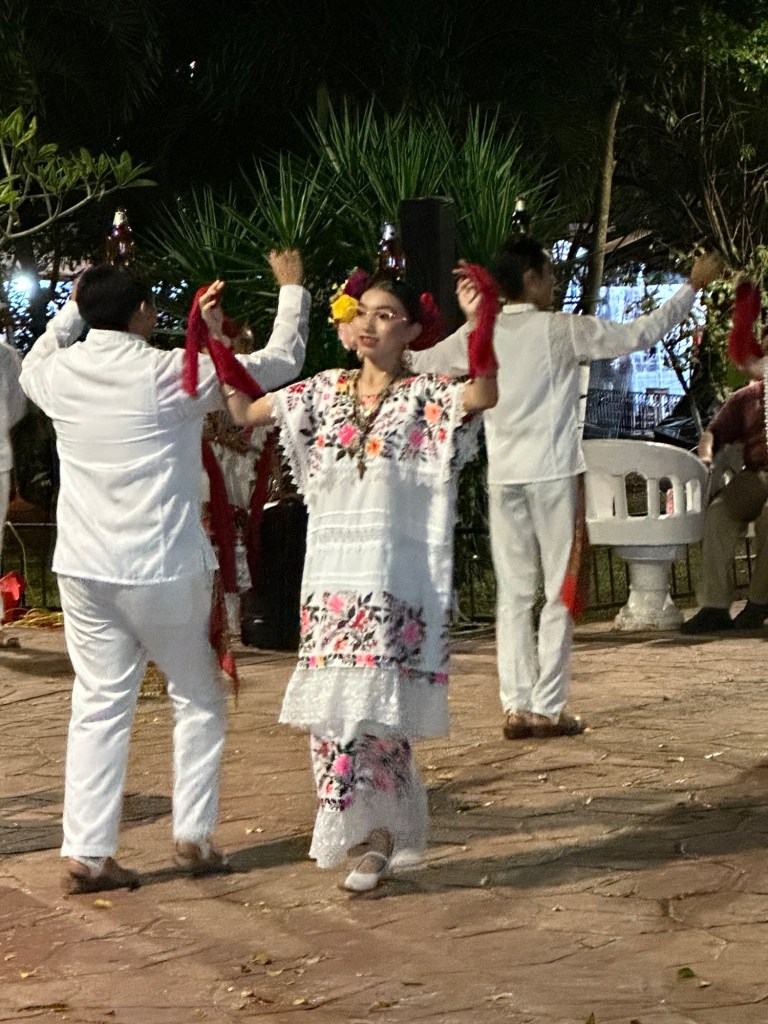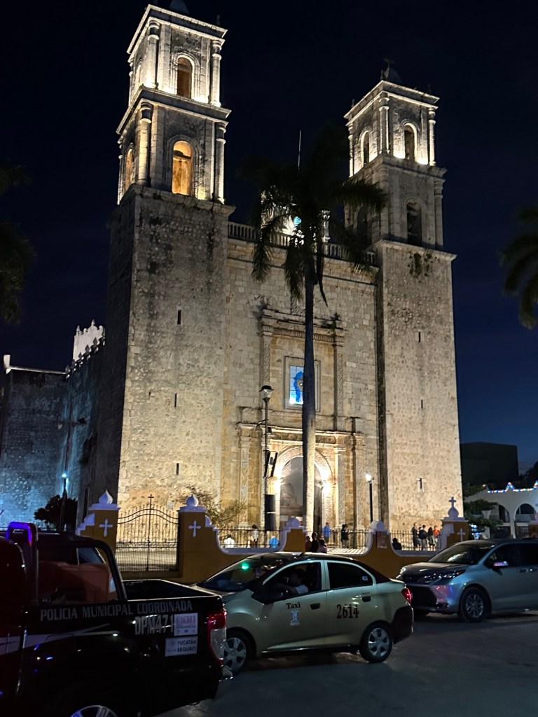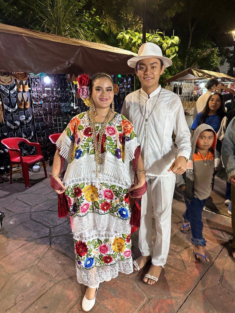 After dinner, back in the square, we shared some churros and some marquesitas, (rolled up thin crispy crepe) with banana, chocolate and cream cheese. We saw some dancers in colorful and traditional outfits dancing with bottles on their heads. We walked through stalls of goods but didn’t see anything worth buying.