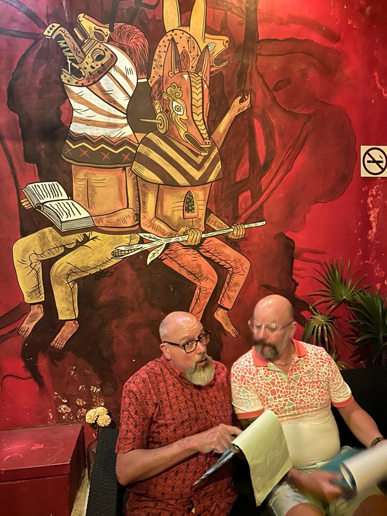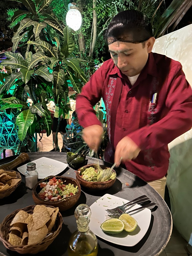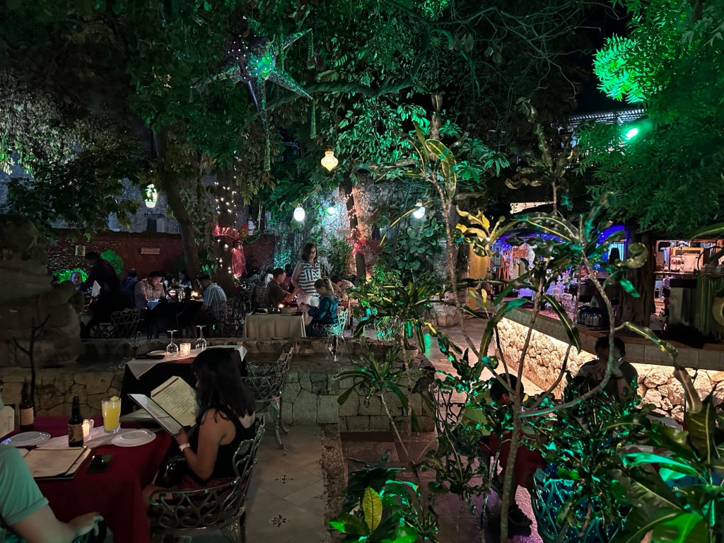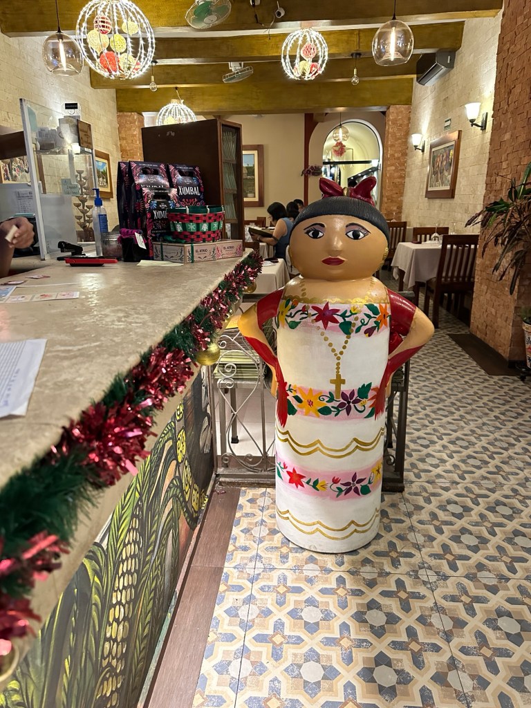 We had dinner at Restaurante El Atrio del Mayab in an inside garden and all had local specialties: garlic shrimp for Shaun, a mix of regional dishes for Edward and queso relleno (stuffed cheese balls with ground pork, raisins and olives) for the rest of us.