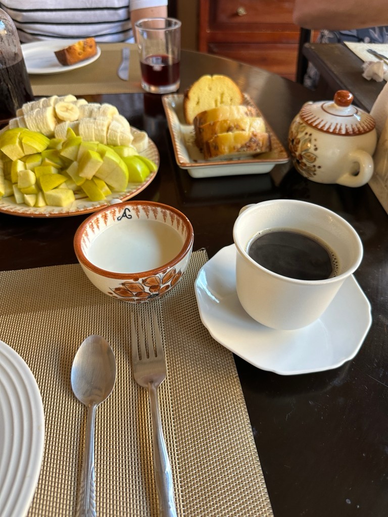 Our airbnb included breakfast and they arrived at 7:45am to prepare it. We had yogurt, granola, bananas, pears, sweet bread and avocado toasts, accompanied by fresh coffee and hibiscus juice.