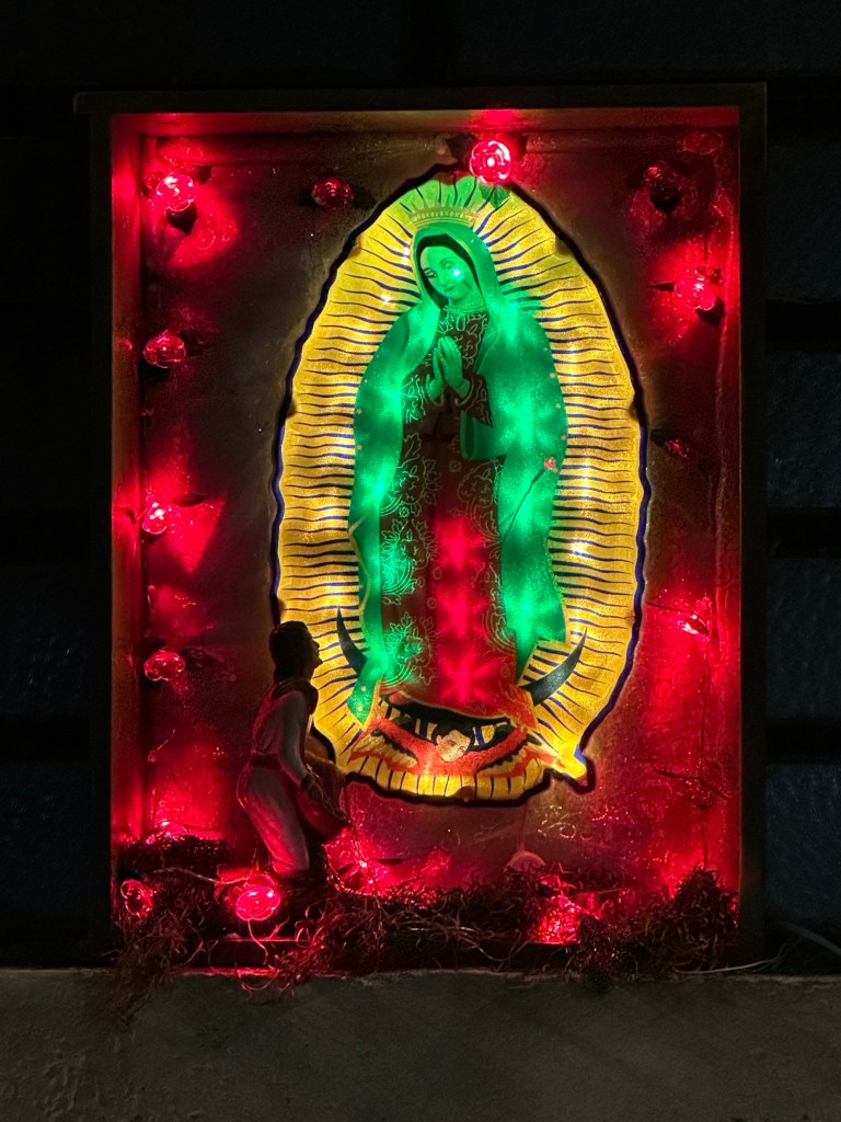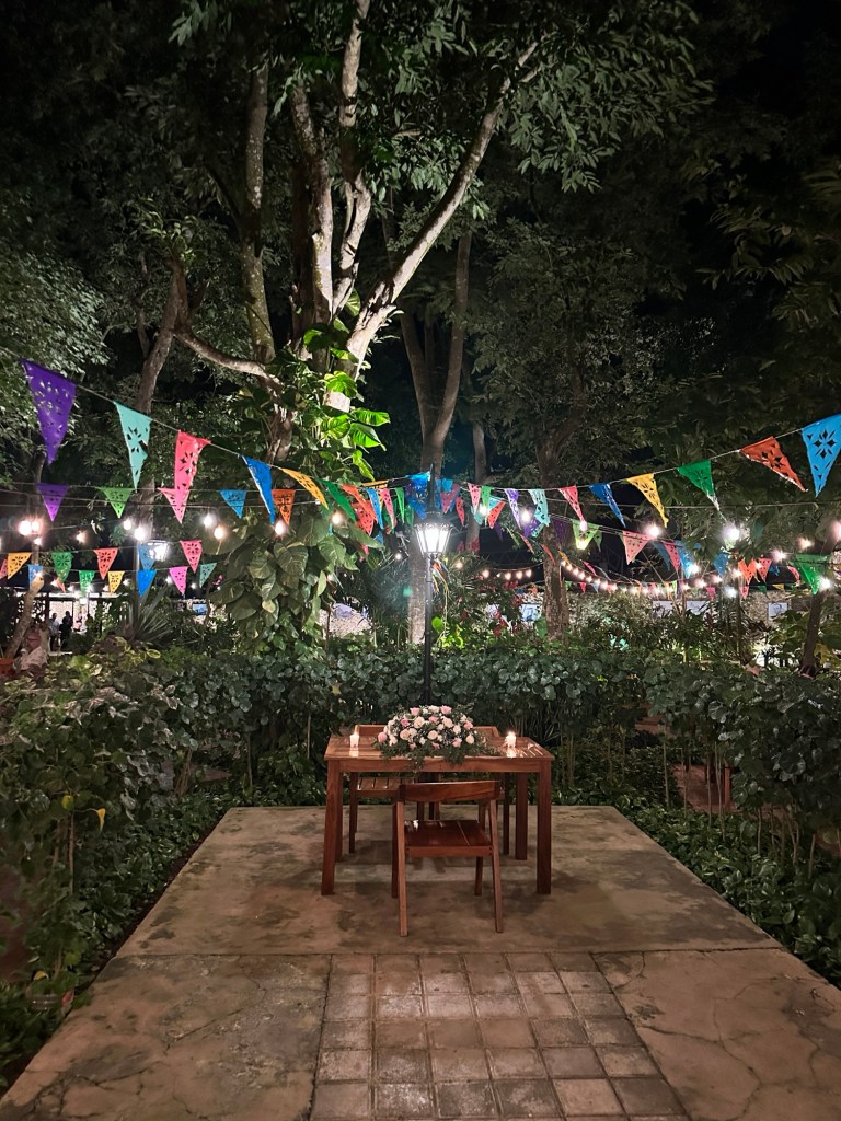 We left the house at 5pm, stopped at a few shops and had a long leisurely dinner at Idilio Folklore Cervecero, a beautiful indoor courtyard restaurant. While we were enjoying our cocktails, a wedding was performed in the center of the restaurant. Dinner wasn’t the best but conversation was very interesting and we certainly learned a lot more about each others from Pogo’s questions: what one item would you save in case of a house fire and what would you tell your younger self? 3 hours later we left the restaurant and went to see a little Christmas flower display which I assume would have been much nicer during the day because the lighting made everything look red and we also saw a light show on the facade on the Convento de San Bernardino.