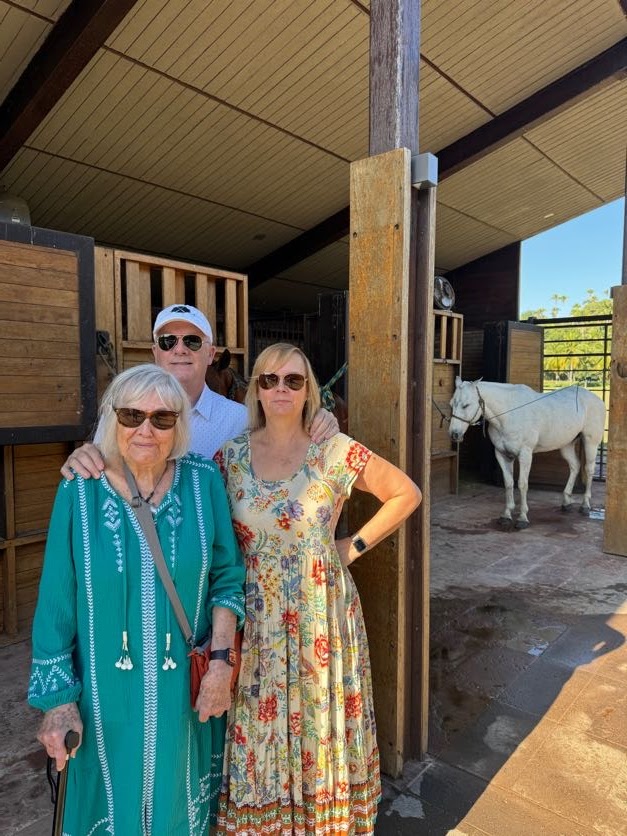 On Sunday, we all went to La Patrona in San Pancho for the polo match and brunch. It was the first time for Alain and Diane. We first stopped at the stables to see the horses. We had arrived early to make sure that we would have a good sitting location close to the food and to avoid too much walking for Mom. It was a perfect day, not a cloud in the sky, just warm enough with a little breeze. The food was delicious and the polo match entertaining.