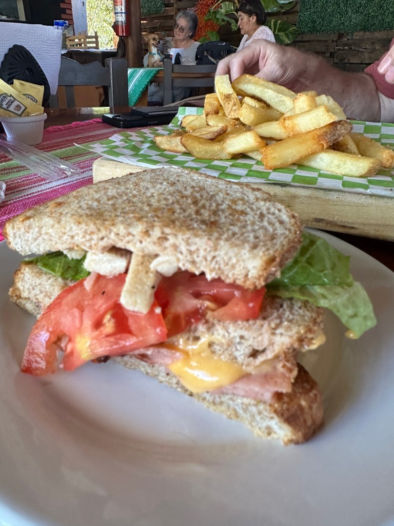 We decided to have a small lunch at La Isla to go see Graciela. It was nice seeing her again. The giant iguanas were back in the parking lot feasting on the restaurant’s leftovers. We shared a club sandwich.