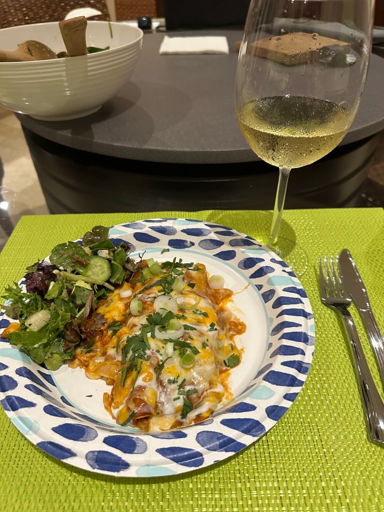 We had Pogo’s enchiladas for dinner which were delicious and I made a salad. We watched a little tv and went to bed early.