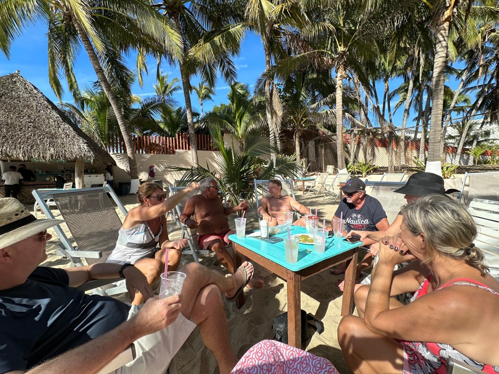 After sitting in the sun on the balcony for a while, Pogo and I met our friends next door at “Etc” for a margarita while Mom rested. We were introduced to some of Mario’s friends Roger and Johanne from Gatineau Qc who are spending their winters in Rincon de Guayabitos in their motorhome. We came back to the condo, made margaritas, grabbed Mom and met everyone in the pool.