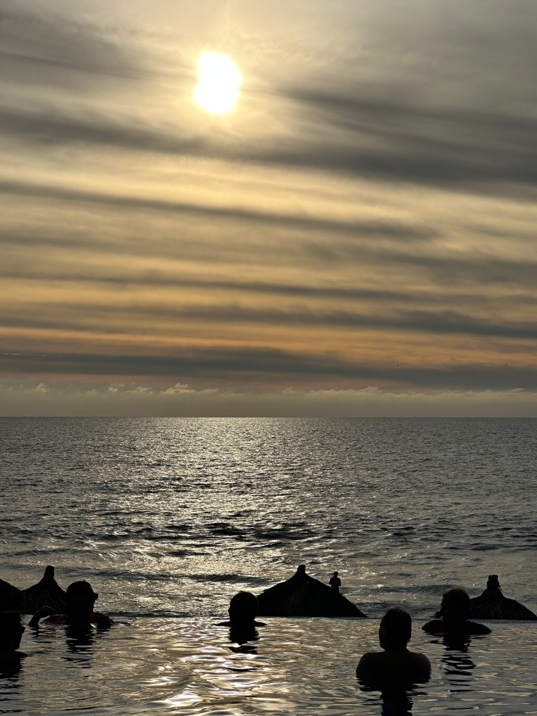 We sat on the balcony to watch an incredible sunset, had a salad with chicken for dinner. Mom was really tired so she went to bed early so Pogo and I went upstairs to Mario and Josée’s condo to finish the evening.
