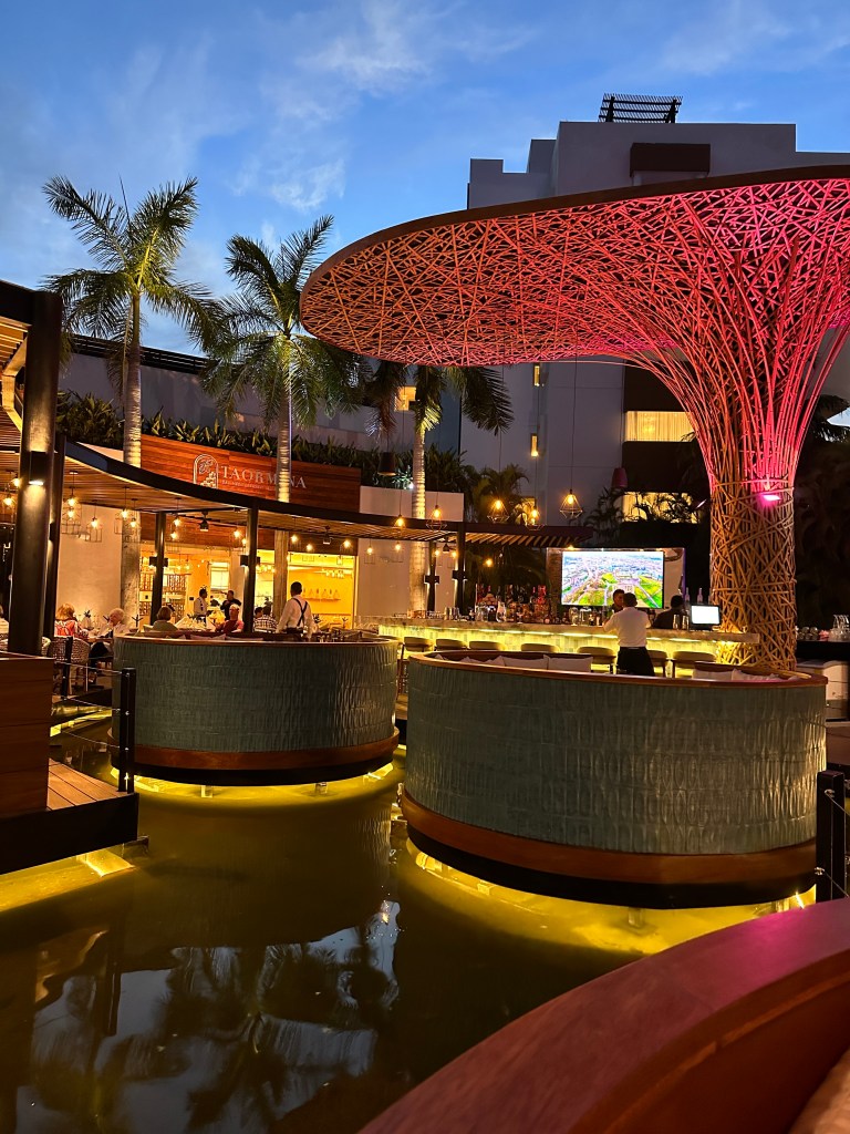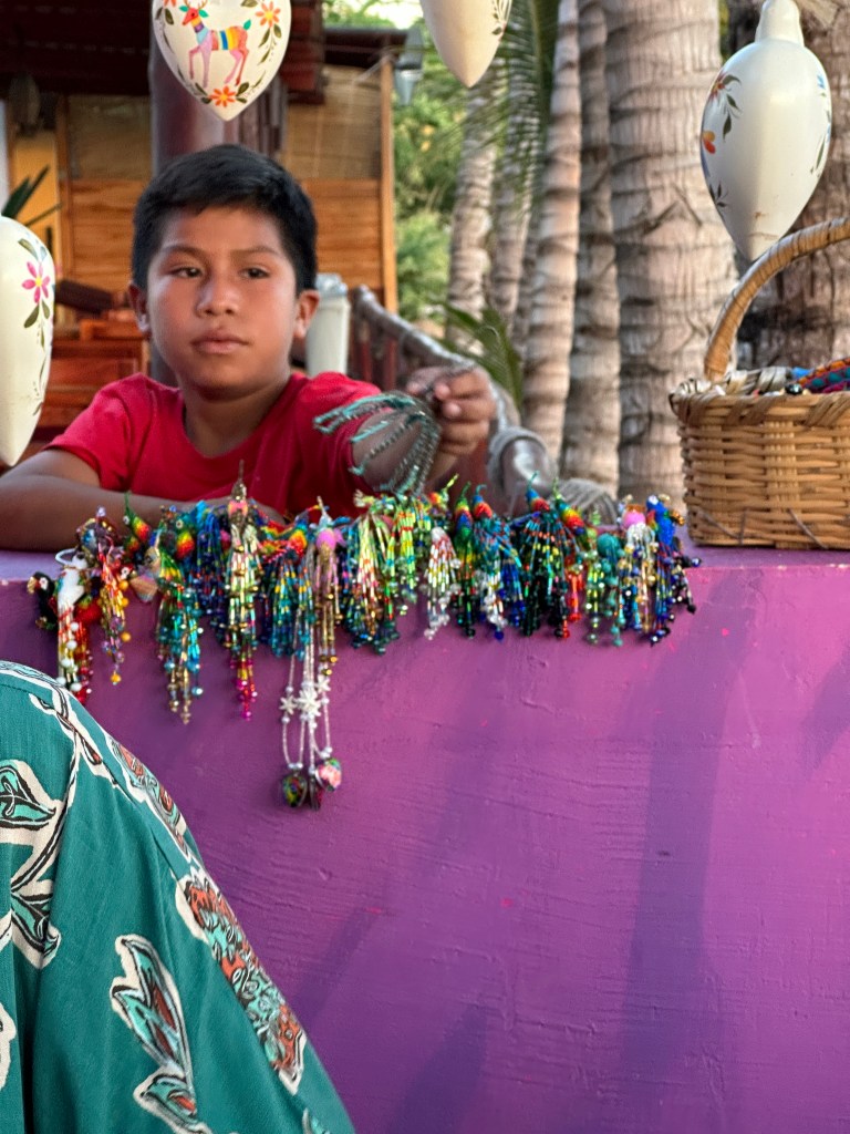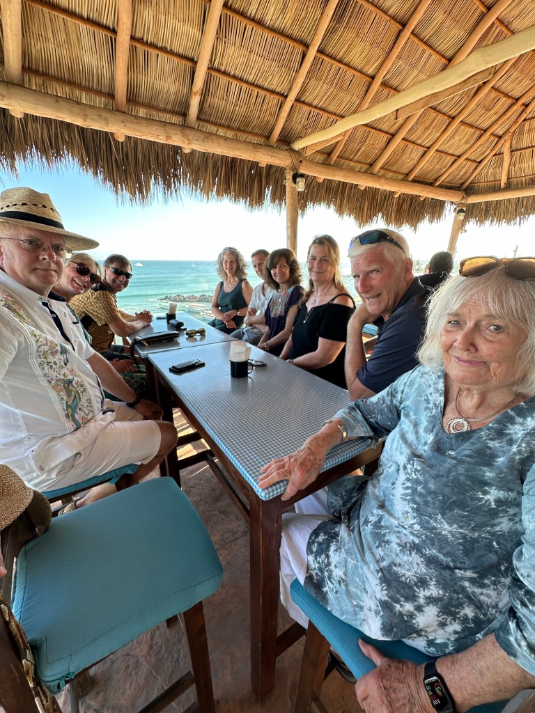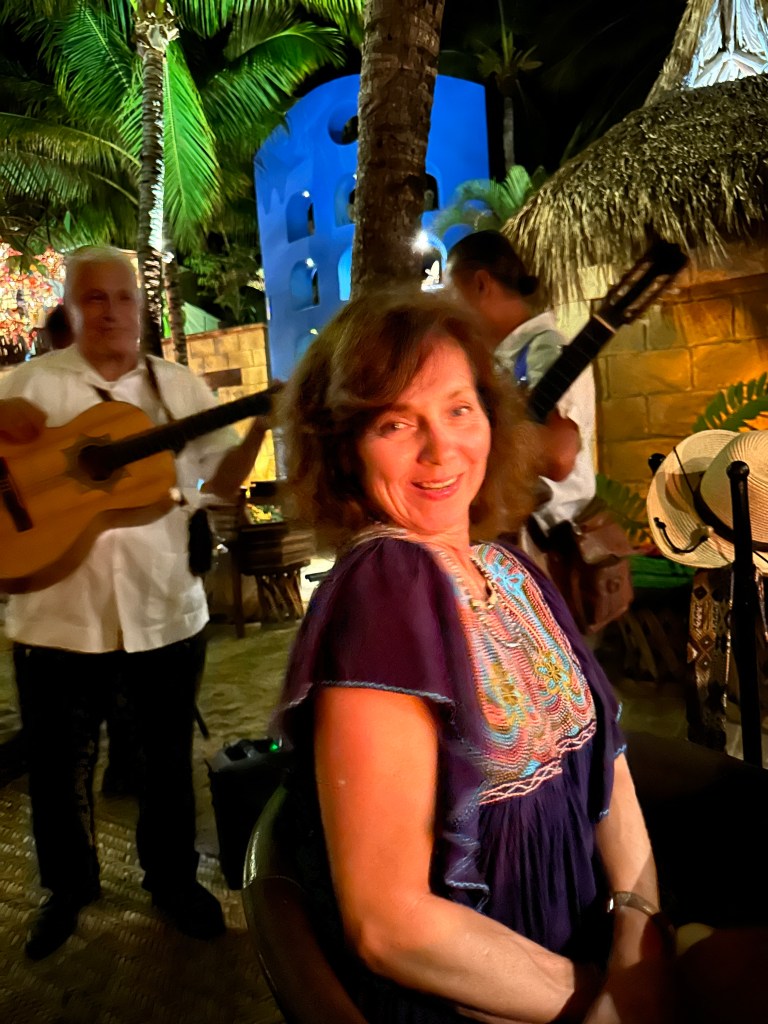 We first went to Terraza de Manolo for drinks and to enjoy the beautiful view. We then went to Mina for dinner. We all shared queso fundido. I could eat it for the rest of my life everyday and I would be happy. I had mahi mahi and the others had chicken mole, blue shrimp, enchiladas, fish tacos and cochinita pibil. Margaritas were flowing. I told the waiter that we were celebrating Sherry’s birthday so he brought her dessert with a big sparkle and the musicians to sing for her. Speaking of musicians, they were not mariachis 😦 but we had them sing Cucurrucucu La Paloma, Mom’s favorite, and they were fantastic! Best rendition we have heard so far. There were also many tears. It was such a great meal in our favorite restaurant for the last night of Mom, Sherry, Dan, Moira and Andrew’s vacation.