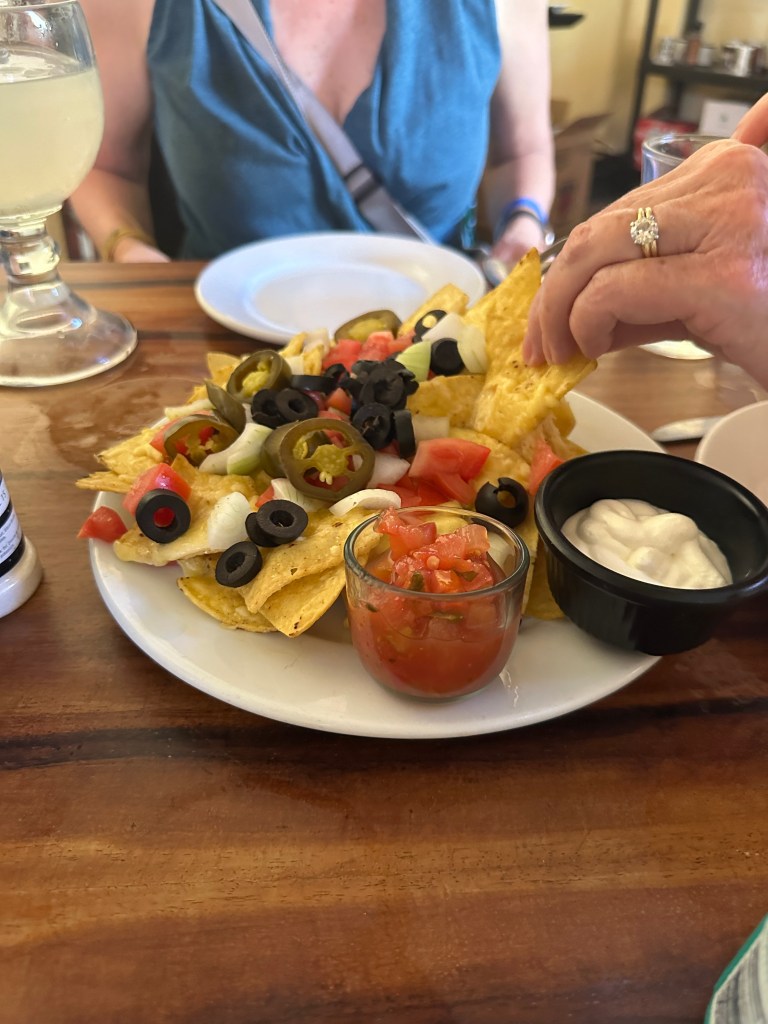 I felt good enough to go to Punta de Mita for dinner. I noticed that Moira had a cut on her nose. She said that before breakfast, Andrew told her that the crocodile was back so she hurried to the balcony to see it and thought the door was opened…She hit her face really hard. Poor thing.