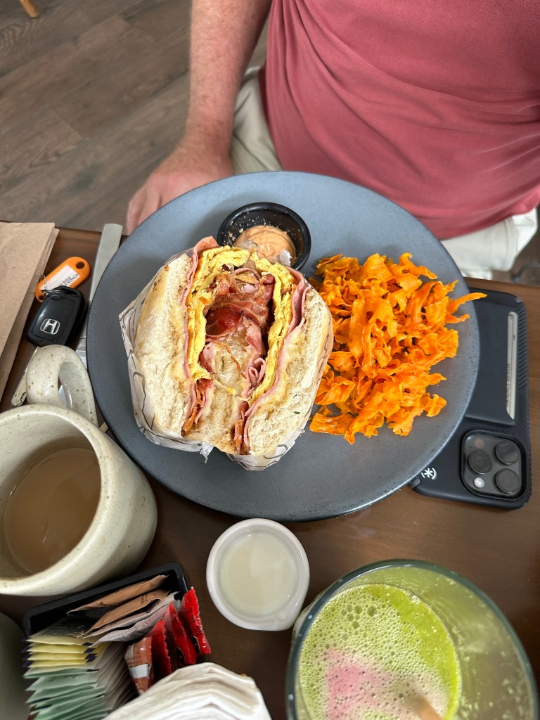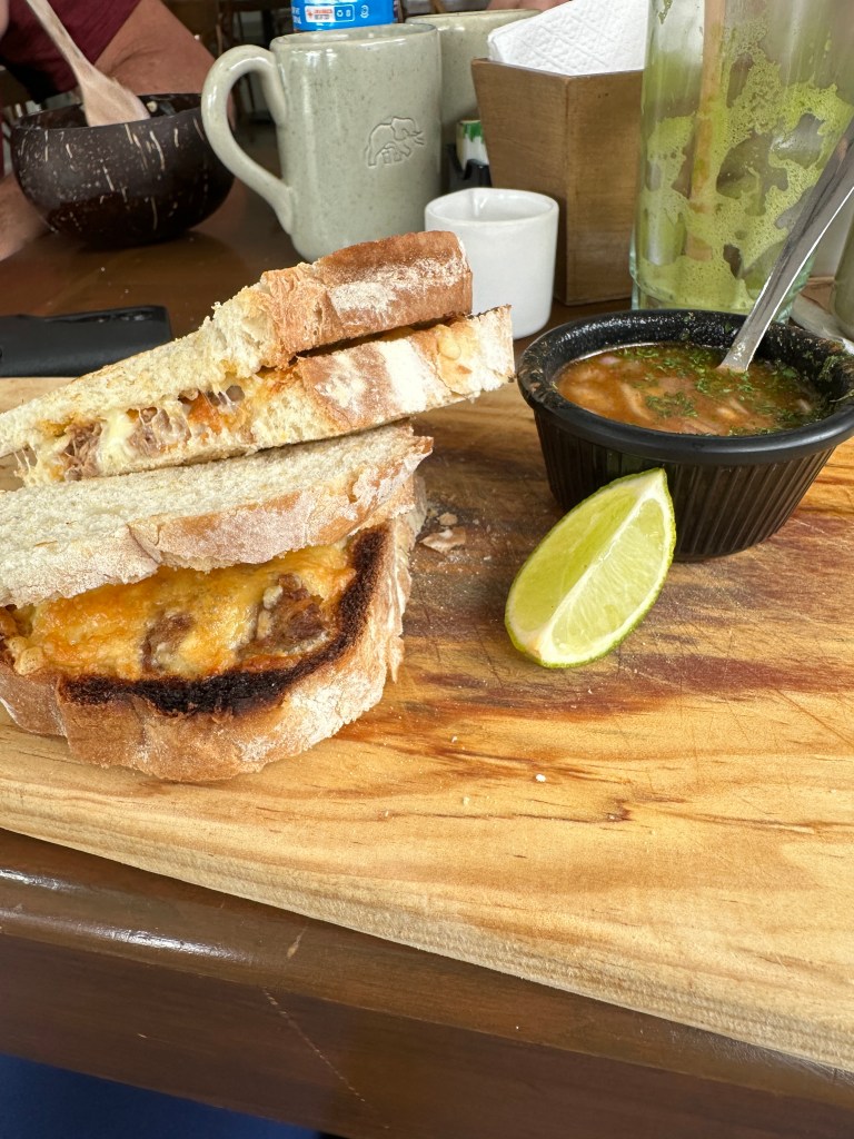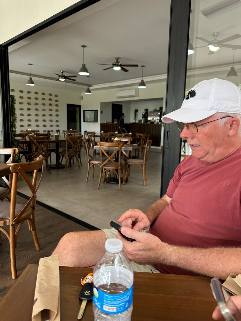 Tuesday morning, the boys went to pickleball, surprise surprise. Deidre got up late as she didn’t feel good during the night. We went to Pata de Elefante for breakfast. I had the birria toast and it was sooo good! Pogo had the egg bagel. It was good but a little spicy for me. Derrick and Deidre both had the Vanilla Sky Bowl.