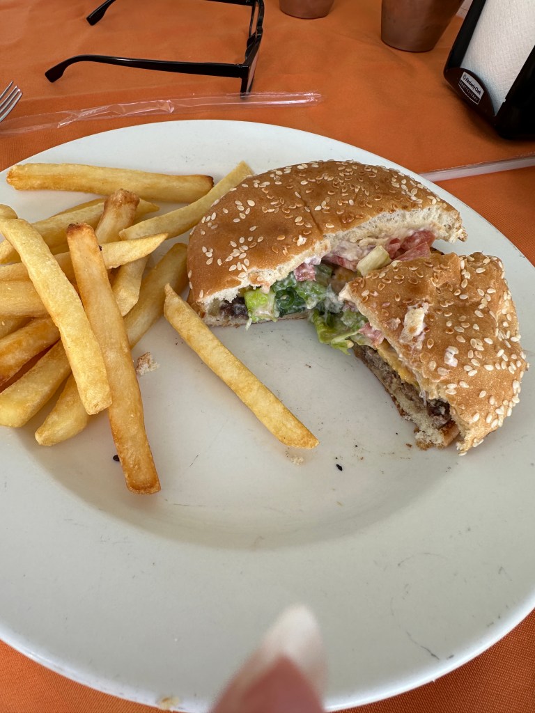 Deidre and I sat by the pool until the boys joined us then we went next door for lunch. Pogo and I shared a burger. It was the first time trying one there and it was quite good. Derrick had the shrimp tacos and Deidre had the shrimp tostada.