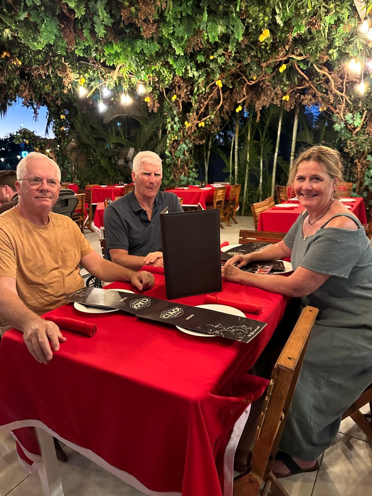 Saturday morning the boys played pickleball, Deidre went for a walk and I stayed in bed. I then picked up, folded some laundry, cleaned some fruits until everyone came back. We were all in the car going for breakfast and to do errands when the guard told us that the repairmen had just arrived to fix our air conditioning. Pogo and I stayed back and Derrick and Deidre went to the hospital to get his MRI’s images and to buy a suitcase at La Comer. On the way there, Derrick was stopped for going through a red light. The earliest he could have paid for the ticket was Tuesday, since Monday is a holiday here and he would have had to leave his driver’s license with the policeman. Because they were leaving tomorrow anyway, he offered to pay the policeman right away. Of course, he agreed right away. He asked for 1800 pesos ($105usd) but settled for 1400 pesos ($82usd), their leftover pesos. Robbery!
