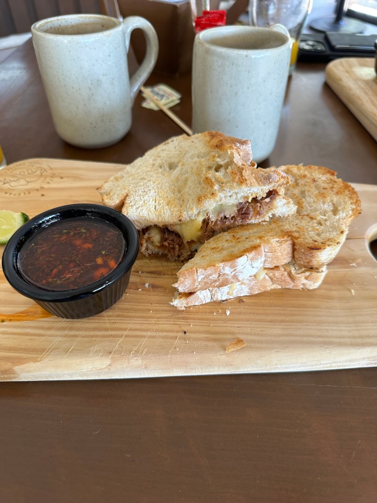 We went to La Isla for breakfast then went to DHL, hoping to ship to Derrick his driver’s license which we had found in the car. They were closed because of Constitution Day. We went to Costco. It was packed because of Constitution Day…We also went to La Comer. We stopped at Oh Croissant for the first time, hoping for a quick sandwich but they were out so we settled on a delicious danish instead. We came home at almost 2pm and Martha and Letty were just leaving. They were here for 5 hours instead of 3 hours. Maybe they took a nap?