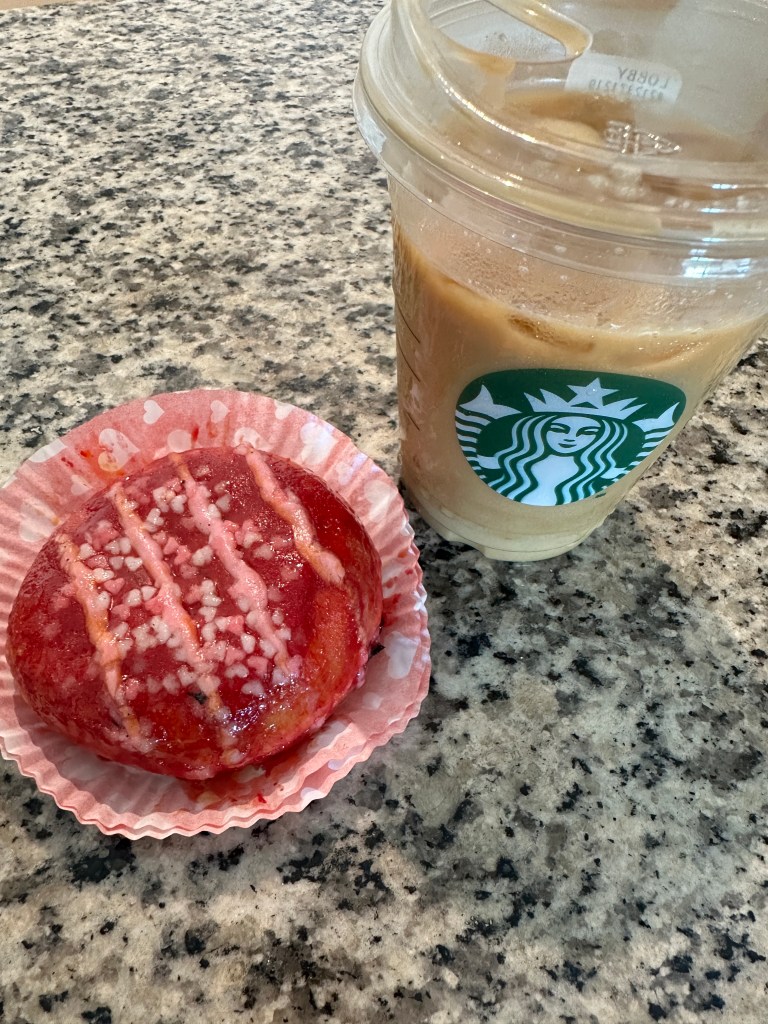 We went to the Paradise Village Market to pick up a few groceries then picked up coffee at Starbucks. We were tempted by their Valentine donut. It was really good!
