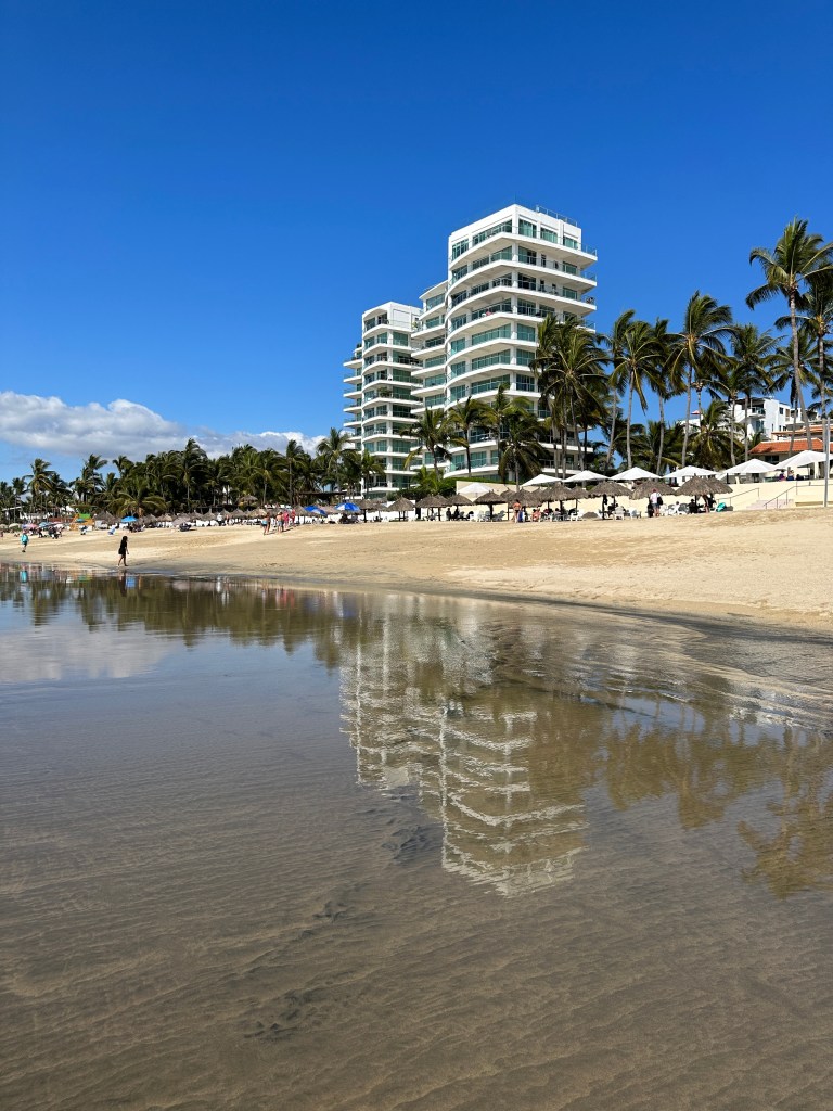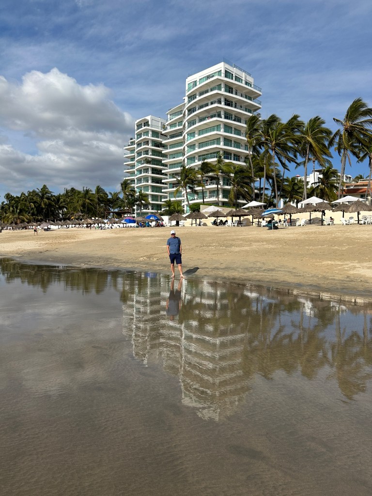 We took a walk on the beach around 3pm at low tide and it was actually flat enough to be enjoyable. I love seeing the reflection of the building in the water. We had Mario and Josée over for dinner: a few little appetizers, chicken enchiladas, salad, rice and dessert. It was nice catching up with them.