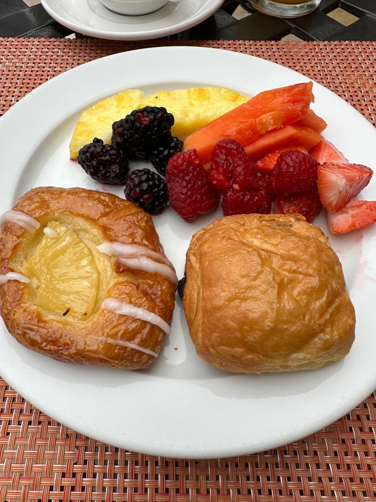 Since Martha was coming to clean the condo, we decided to go for breakfast (like we need a reason to go for breakfast…). We went to a new restaurant, La Casona, at La Villa Estancia Beach Resort and Spa, an hotel at the end of our street. We had made a reservation for Valentine’s Day dinner there since all the other places we had tried were already booked, and we wanted to check it out. The resort has mostly timeshares but condos can be rented by the week with the option of being all inclusive as well. We decided on the buffet because we were told that picking from the menu would take 40-45 minutes as they were short staffed. The selection of fruits and breads was great and fresh. The hot food selection was plentiful but cold. It wasn’t worth the $75 it cost. Also 15% tip had been automatically added for the waitress who brought us coffee and orange juice only.
