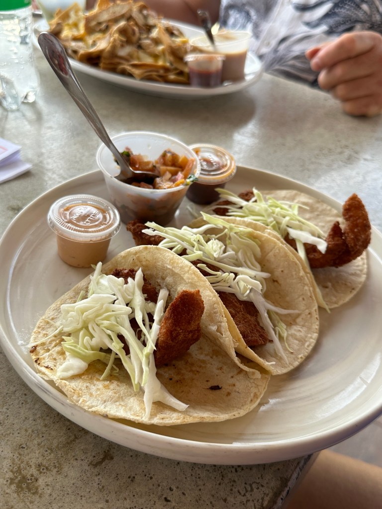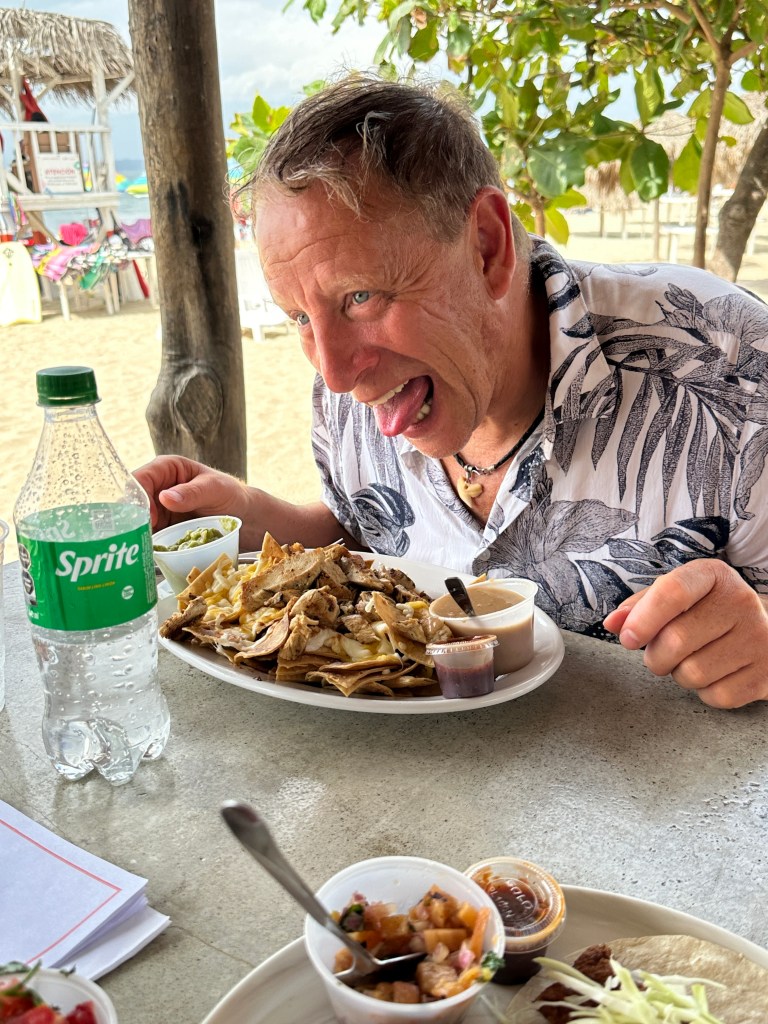 Tuesday morning, I went with Josée to the market. We got a coffee then took our time walking around. We made a few purchases, drove back home and met the boys at the beach. We had decided to go next door to La Gaviota for lunch but they were closed so we continued walking on the beach and went to the Sabbia Beach Club, a big name for a little beach restaurant. Mario had chicken nachos and the rest of us had fish tacos. The food was good so we will have to go back.