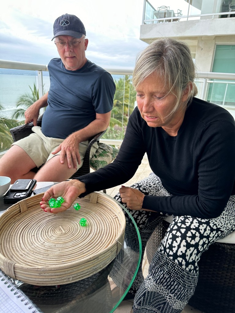 Back at the condo, we sat under our beach palapa and Josée and I played a game of dice while the boys took a snooze. We said no gracias to all the beach vendors despite wanting to buy everything from the little kids. We ended up having margaritas and snacks on our balcony later on because I was getting chilly on the beach. The weather has been weird lately. It has been really cloudy and it will be until Saturday.