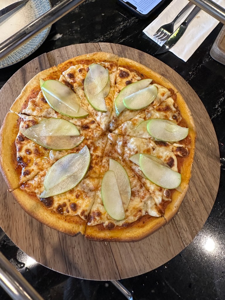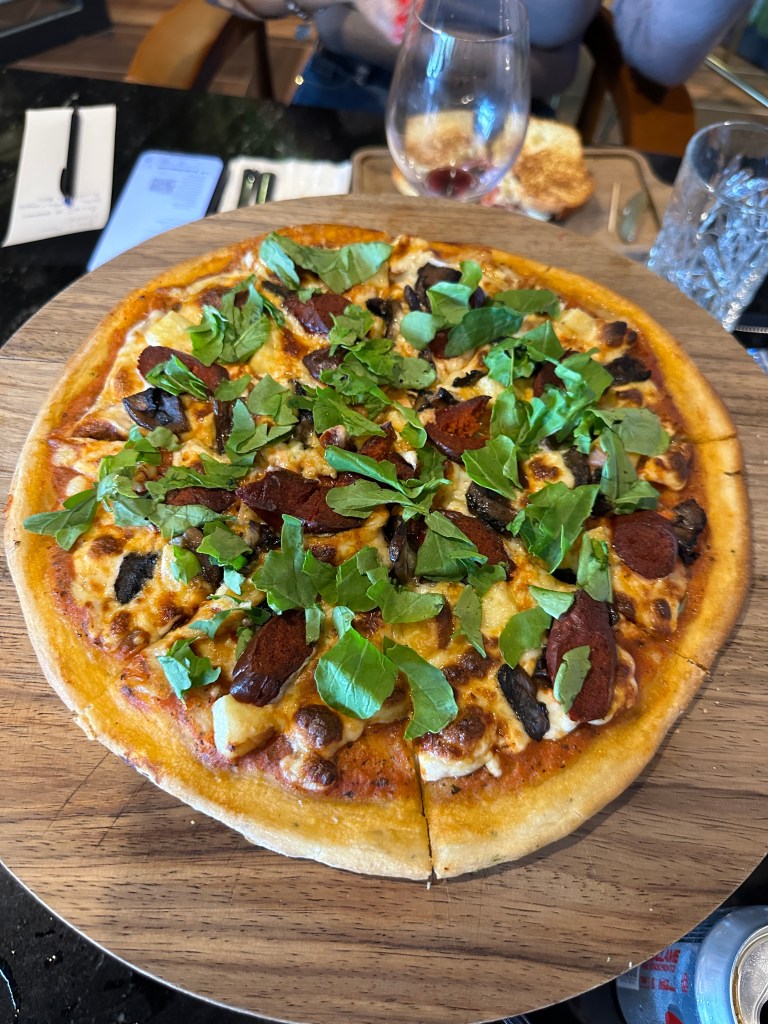 Another day, another grey sky. We had breakfast at the condo then went with Mario and Josée to a new restaurant/bar that had just opened 2 months ago called the Wine Corner. We arrived a little after 1pm to find out that just a few items on the menu were available until 2pm. We ordered drinks and my cosmopolitan was really good. Josée didn’t care for her wine. We had a few delicious tapas: bruschetta rustica and brie and serrano ham. At 2pm, we ordered pizzas and pastrami sandwiches to share. Our mushroom and spanish sausage pizza was a little dry. Mario’s had a blue cheese, apple, pear and honey pizza. I had a bite and thought it was much better than ours.