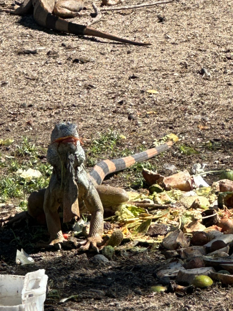 Pogo had gone to pickleball and didn’t feel really good so we stayed in later than planned but finally went to La Isla for a late breakfast. Graciela gave me a rose for Valentine’s Day. There were so many iguanas munching in the parking lot, at least 20 of them at some point. One tried to go to the street but the servers shooed it back toward the back.