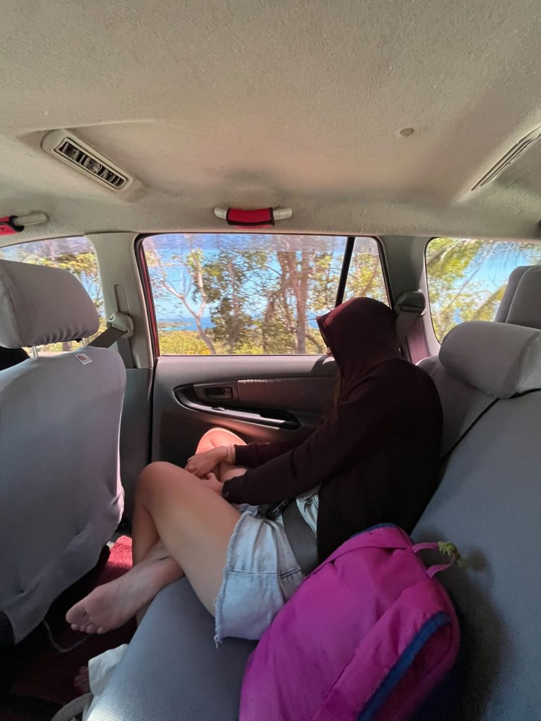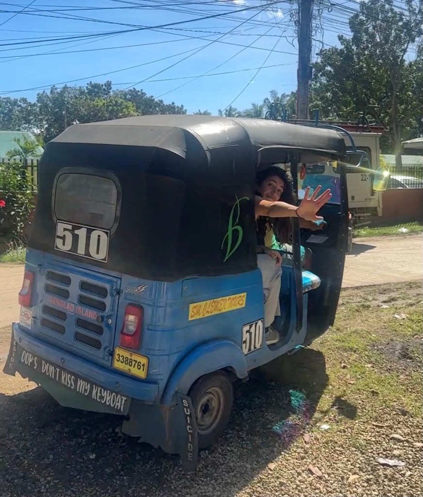Her and Luna finally made it to the ferry on their way to the island of Bohol. Luna sent me a picture of Max sleeping in the taxi on the way to the ferry. She said that they made it out of the Clown House but that Max’s sanity will never return! Haha! She said she wore her out on this trip and that Max now sleeps like a baby in cars. The hotel they ended up in was their worse so far. The last night they were there, they had a humongous spider on their wall and it went inside the air conditioner before the front desk could catch it. They didn’t have another room available. Luna had a mosquito net so they tied it up with their phone wires and they both slept in the same bed, feeling a little bit protected.