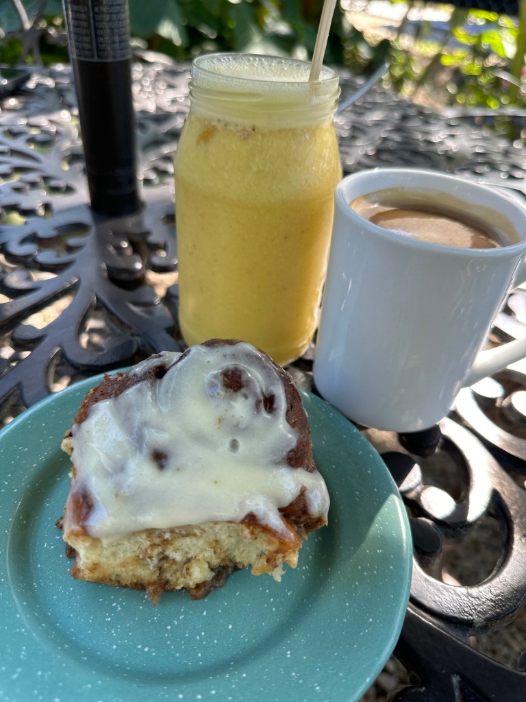 We did our usual stops, first at Proyeco Darwin for a little breakfast. Pogo was not too hungry as he had had cereals already but we both had a delicious cinnamon roll and I had a toast with hummus, avocado and grilled tomato. The coffee is always hot and good there.