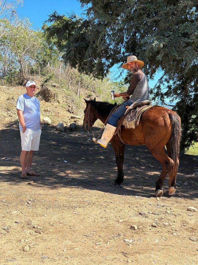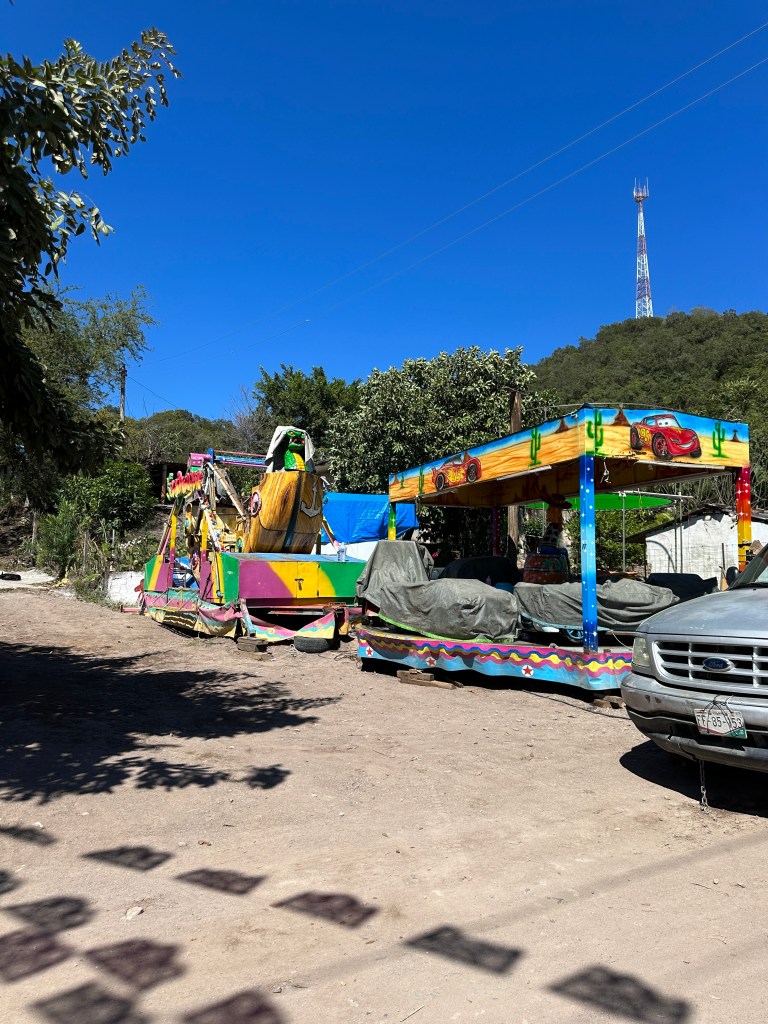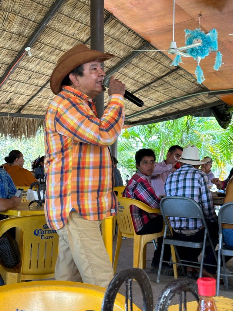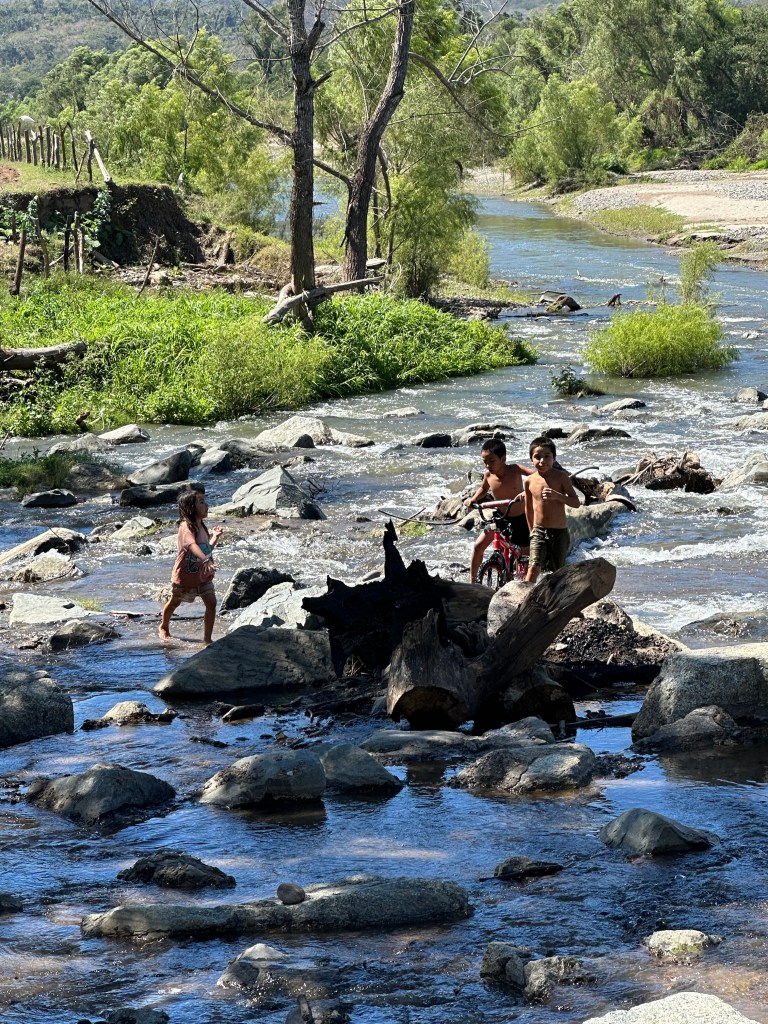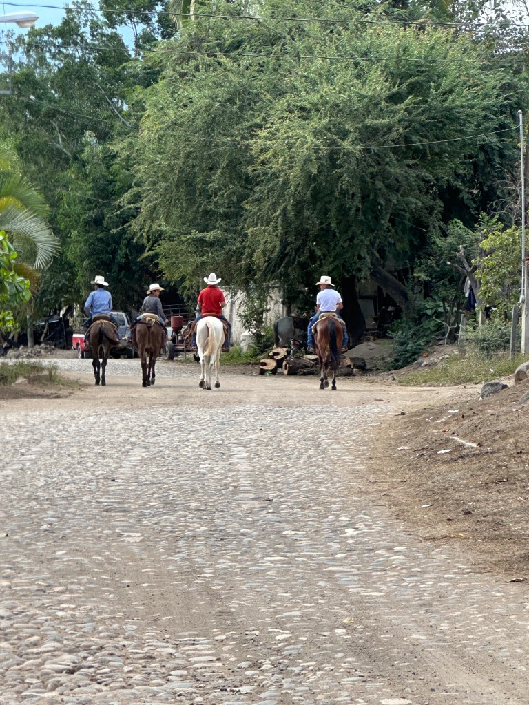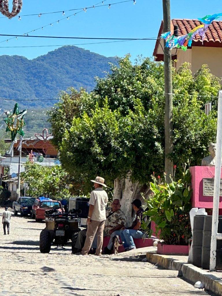 We continued on our drive, I took plenty of pictures of caballeros, churches, flowers, stores, cute kids, fairs, etc. When we arrived at the drivable water dam at El Coatante that crosses the Ameca river, the water was flowing over like a waterfall. We had never seen it so strong. People were enjoying driving through it and splashing everywhere. Some side by sides, were having a blast. The people were drenched and kept going back and fort. We watched a fisherman throwing his net for a while until his kids decided to jump in the water. We continued on the road and ran into a caballero. Pogo asked him if he could take his picture. His name was Raoul. It turned out that he was the brother and co-owner of the place that we like to take pictures of the amazing tree overlooking the river. In all of our years driving there, the gate of their property has been opened only twice. This year, it happened to be opened and we talked to his brother who was just as friendly. We found out that they used to live in Salt Lake City for 20 years with their other three brothers but the two of them came back and bought that beautiful ranch. The buildings need work but the property is breathtaking. Their brothers are still in the States. Raoul said to stop by again for a coffee or a beer next time we drive by.