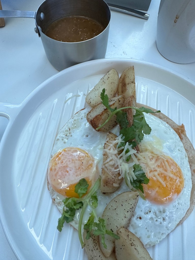 Monday morning, Martha came to clean the condo as usual. We went to Paradise Village to have breakfast as Pogo wanted to bring clothes to the drycleaner. We went to La Sazon de Ama for the first time. We both had fried eggs over thin flour tortillas stuffed with ham and cheese. The salsa that came with it was so good (I can’t remember the name of it) and that dish isn’t showing on their online menu. I guess we will have to go back. We had a few errands to do. Dee called Pogo and he offered to pick up some groceries for her but she asked if she could come with us instead. We picked her up and she said that she just wanted our company. We went to La Comer, dropped Dee off back at her condo then got ready for our 4pm pickleball lessons.