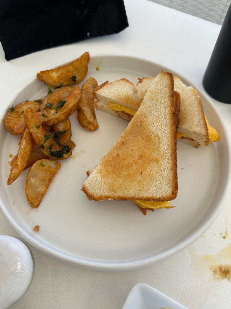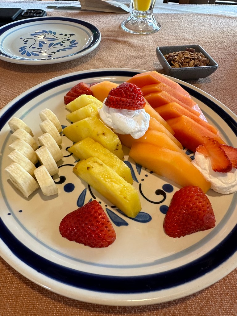 Sunday morning, breakfast was a new place for us: Ama on Nuevo Nayarit Boulevard. We both had a fruit platter thinking it was a fruit bowl, the way it was explained on the menu, on top of having an avocado toast for me and an egg sandwich for Pogo. We brought most of the fruits back. It was also a beautiful restaurant. The only negative was that the orange juice was from a box and not freshly squeezed which we have become accustomed to here.