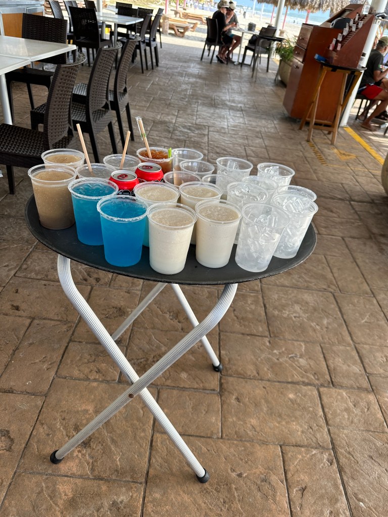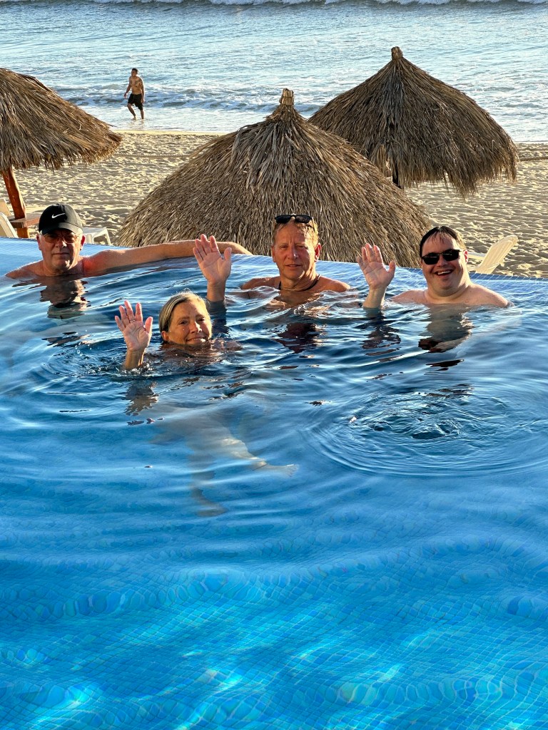 Before breakfast, we had stopped at Yves and Régine’s condo to wish Jean-François happy birthday and to give him the t-shirt we had bought for him but it was too big so we went to Paradise Village to exchange it. They didn’t have the same exact design but he was still very grateful when we gave it to him by the pool later on. We hung out at the pool for awhile. It was really windy to the delight of kitesurfers and saiboats but after a few hours, we came back upstairs. There were so many birds! When the wind calmed down, we brought margaritas to the pool to share with Josée and Mario. Jean-François joined us and stayed glued to Mario who he really loves. Pogo picked up pizza at Tarantella for dinner and we watched the last episode of Griselda and the first episode of the second season of The Tourist.
