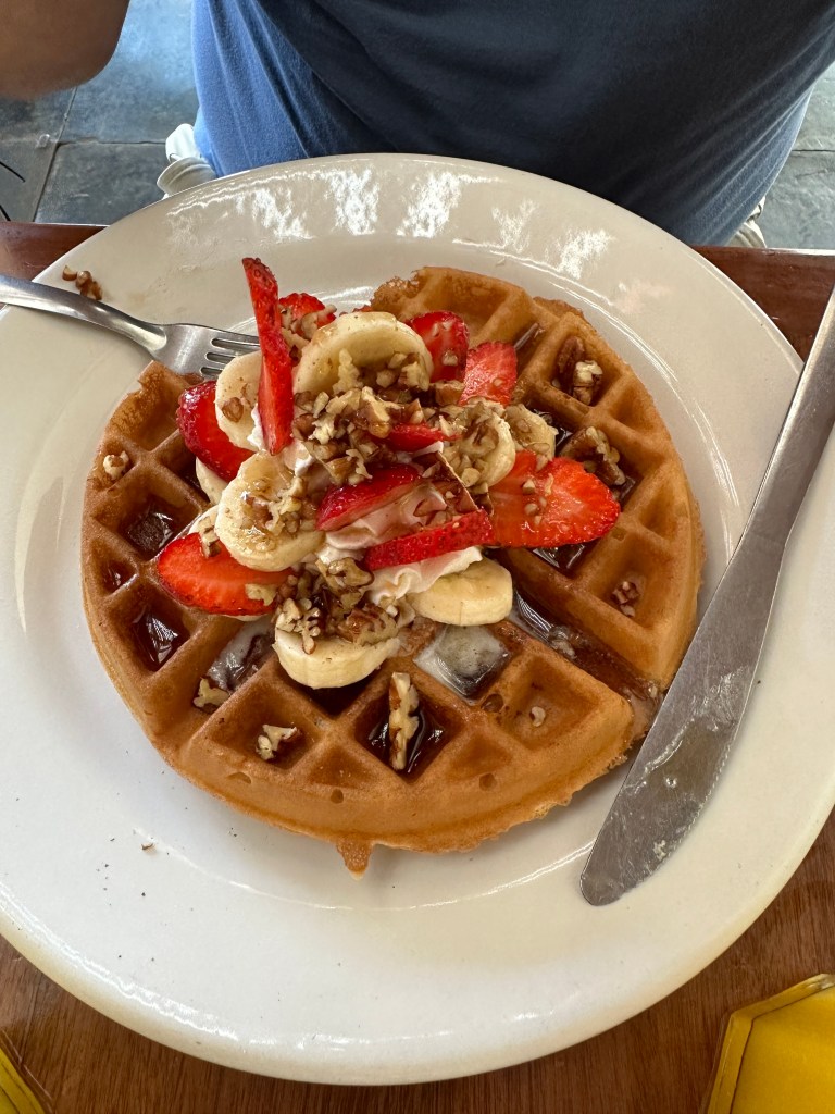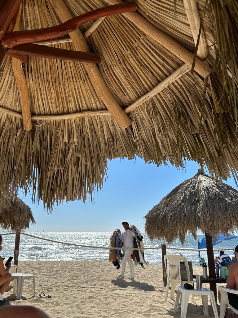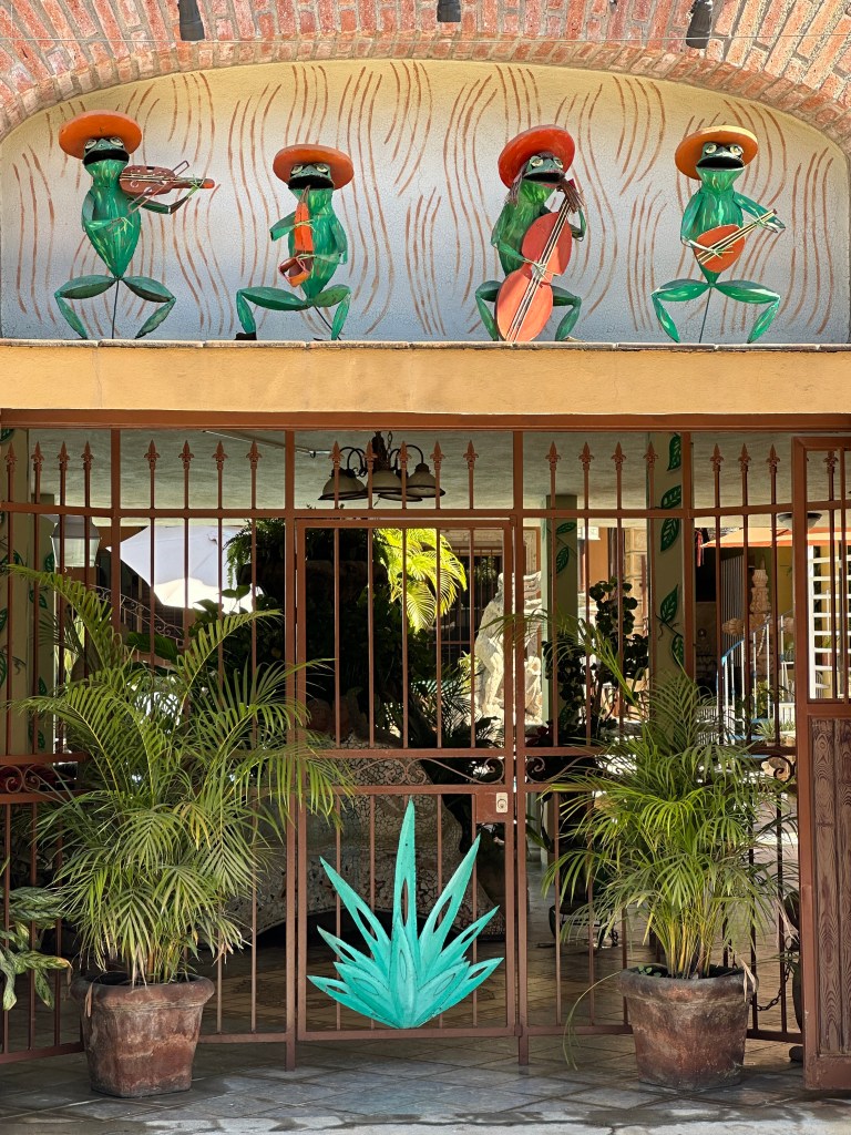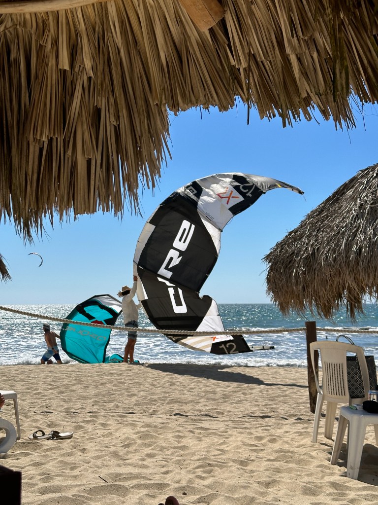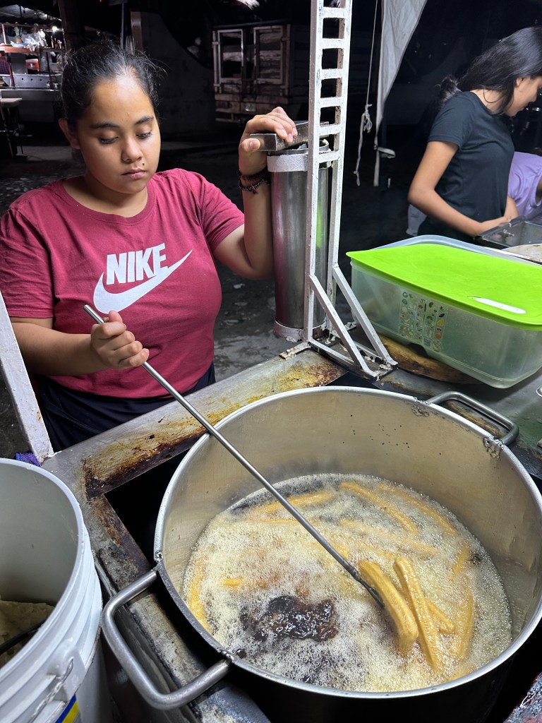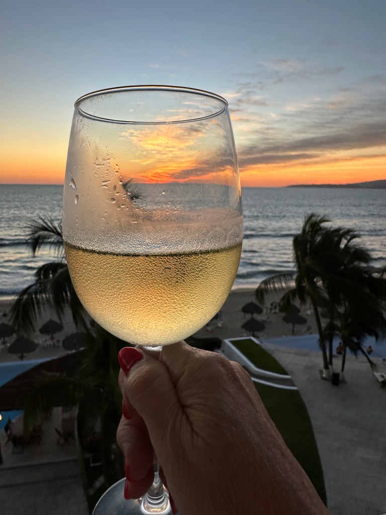 Tuesday morning, Pogo went to pickleball and I went to the market with Josée. We were there for a few hours. We might have bought a few shiny thingies. After lunch, we sat on the beach for awhile. We went to play dice by the pool and the boys won again. We took a quick dip in the pool then got ready to go to Bucerias to take Mario and Josée to dinner at Mezzogiorno, our gift for their 25th wedding anniversary. We had an excellent meal and just as much fun as we always have together. We stopped for churros on our way out of town because, duh!