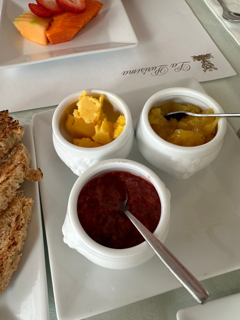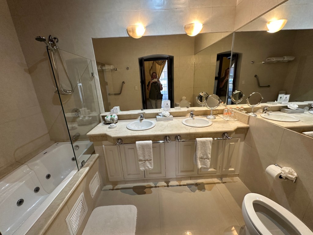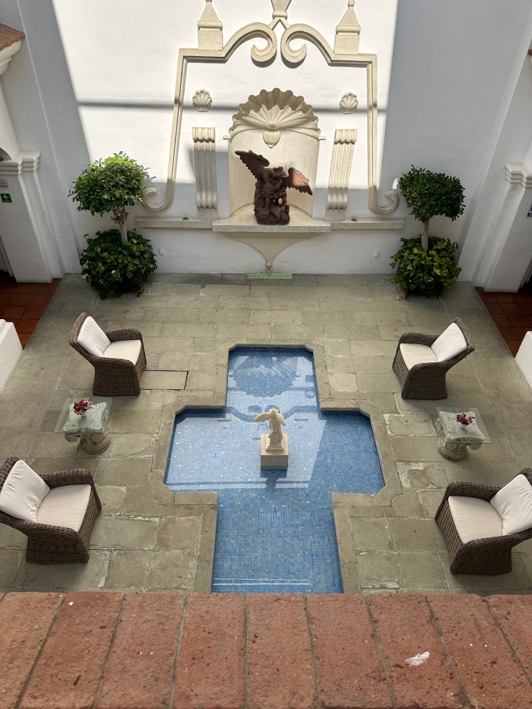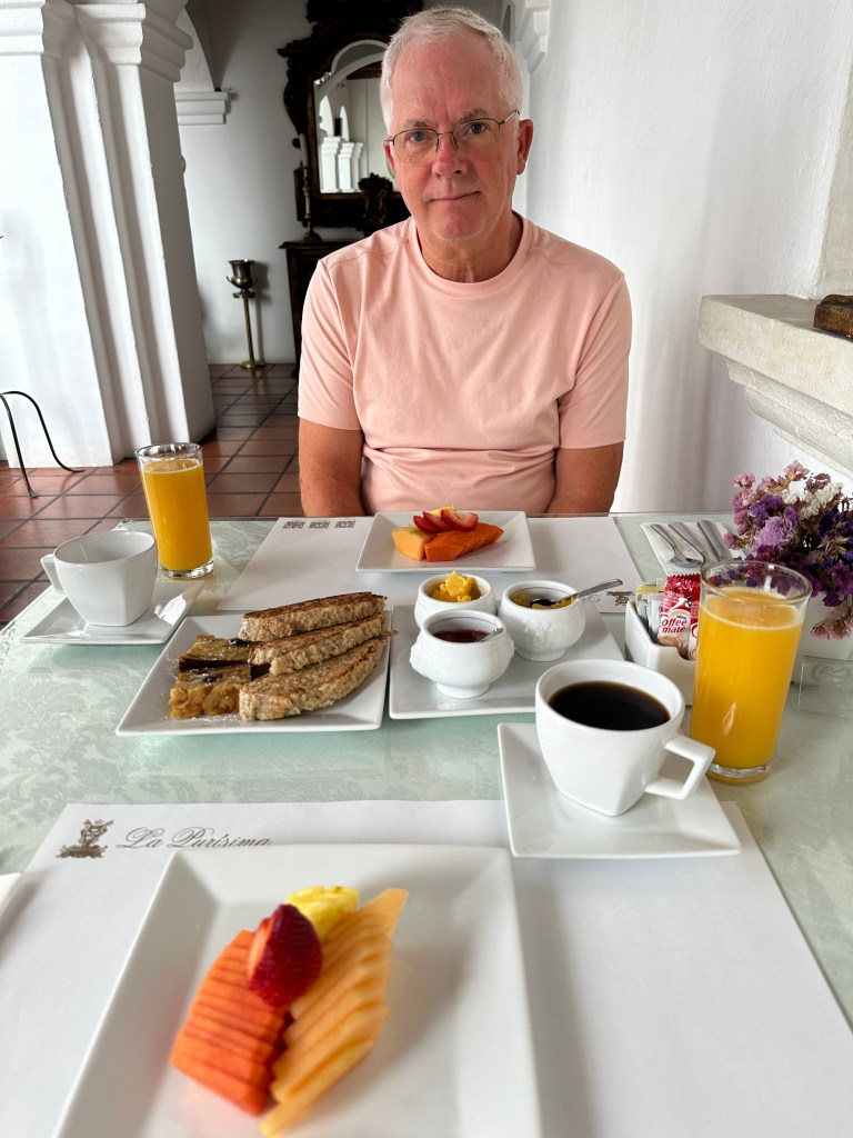 Saturday morning, I sat in the courtyard of our hotel to write my blog as I needed to catch up. Pogo joined me for coffee, waiting for Max to join us for breakfast. She had a continental breakfast as well and it cost only 50 pesos.